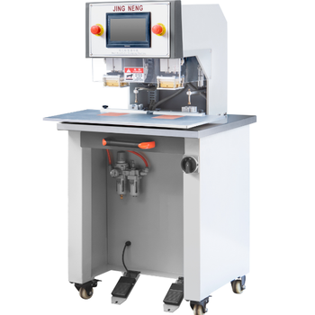 เครื่องกดฉลากอัตโนมัติแบบสองหัว JN-962พร้อมส่วนประกอบที่นำเข้าสำหรับรองเท้า/ผลิตภัณฑ์หนัง/เสื้อผ้า/กระเป๋า